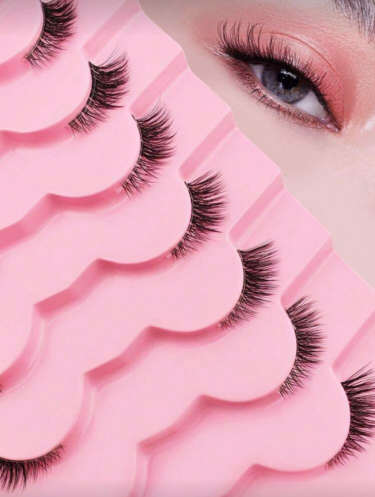 Medias pestañas postizas de aspecto natural, estilo ojo de gato, esponjosas y naturales, con banda transparente.